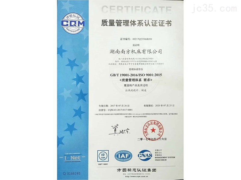 當(dang)前位置:首(shou)頁 > 榮譽資(zi)質 > 質量管(guǎn)理體系認(rèn)證證書